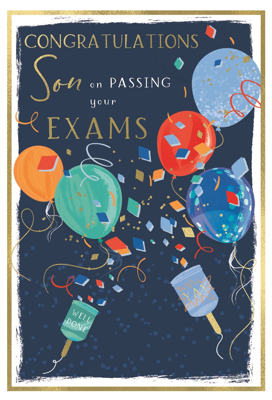 Congratulations Son - On passing your Exams - Party Poppers - Balloons