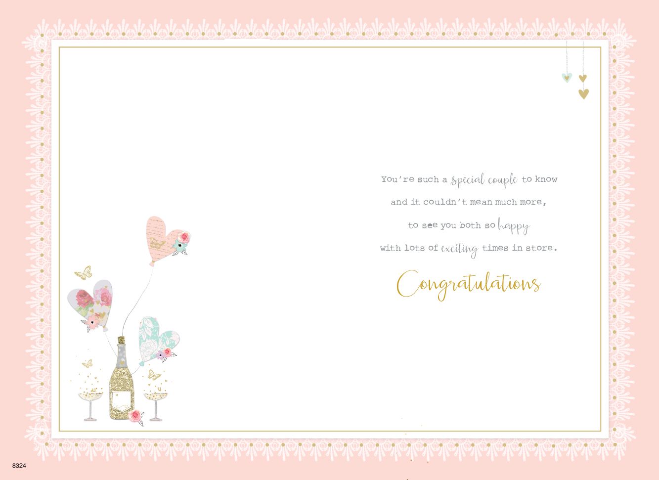 Verse reads: You're such a special couple to know and it couldn't mean much more, to see you both so happy with lots of exciting times in store. Congratulations