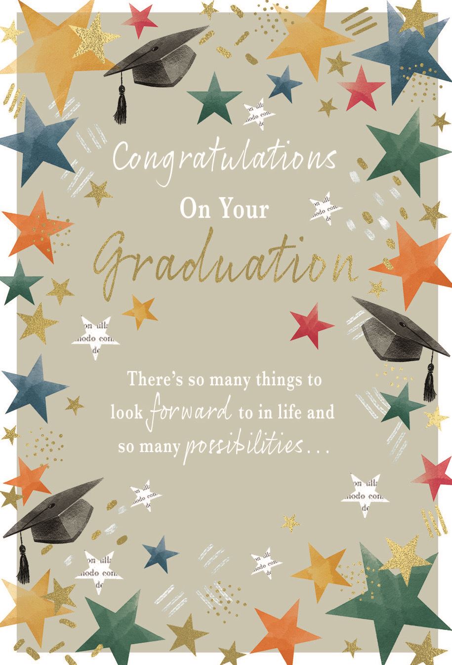 Graduation Open Card - Graduation Caps and Stars - Congratulations