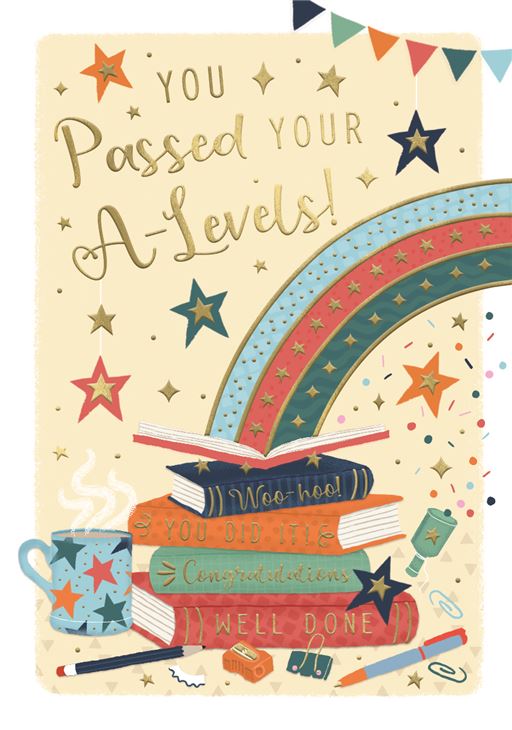 Passed A-levels - You Did It - Well Done - Exam books - Congratulations