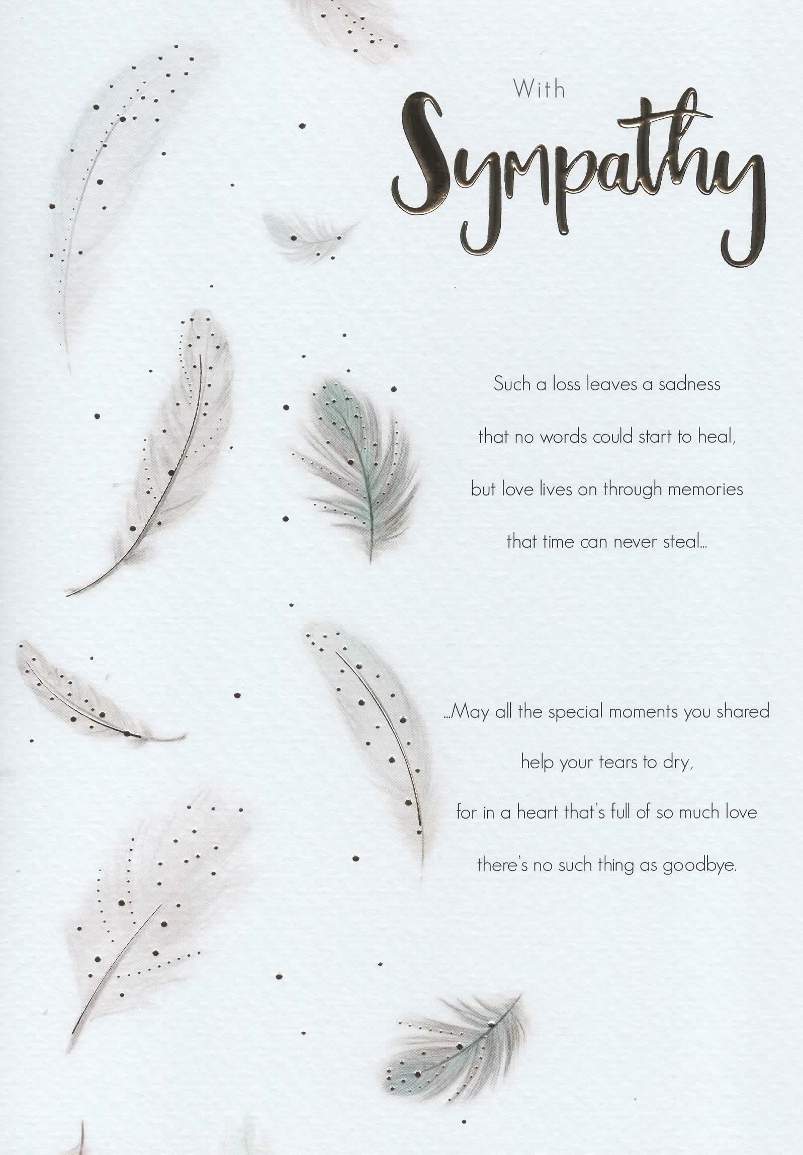 Verse reads: Front - Such a loss leaves a sadness that no words could start to heal, but love lives on through memories that time can never steal... ...May all the special moments you shared help your tears to dry, for in a heart that's full of so much love there's no such thing as goodbye. Inside - Thinking of you at this sad time