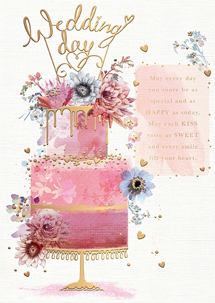 Verse reads: Front- May every day you share be as special and as Happy as today, May each kiss taste as sweet and every smile fill your heart...Inside-May your every dream come true and may the friendship you've found in one another last a lifetime through. Have a beautiful wedding day