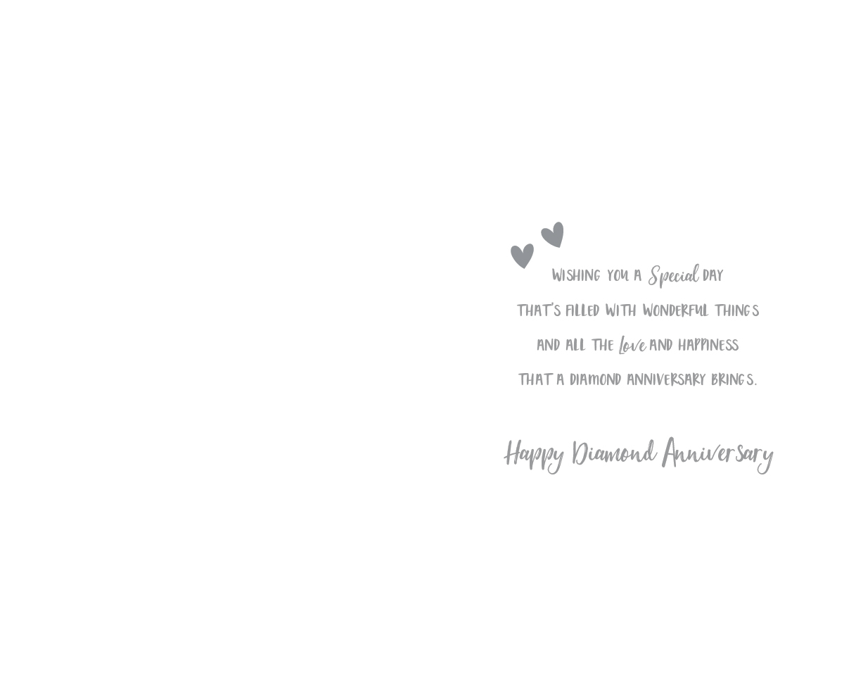 Verse reads: Wishing you a special day that's filled with wonderful things and all the love and happiness that a Diamond Anniversary brings. Happy Diamond Anniversary