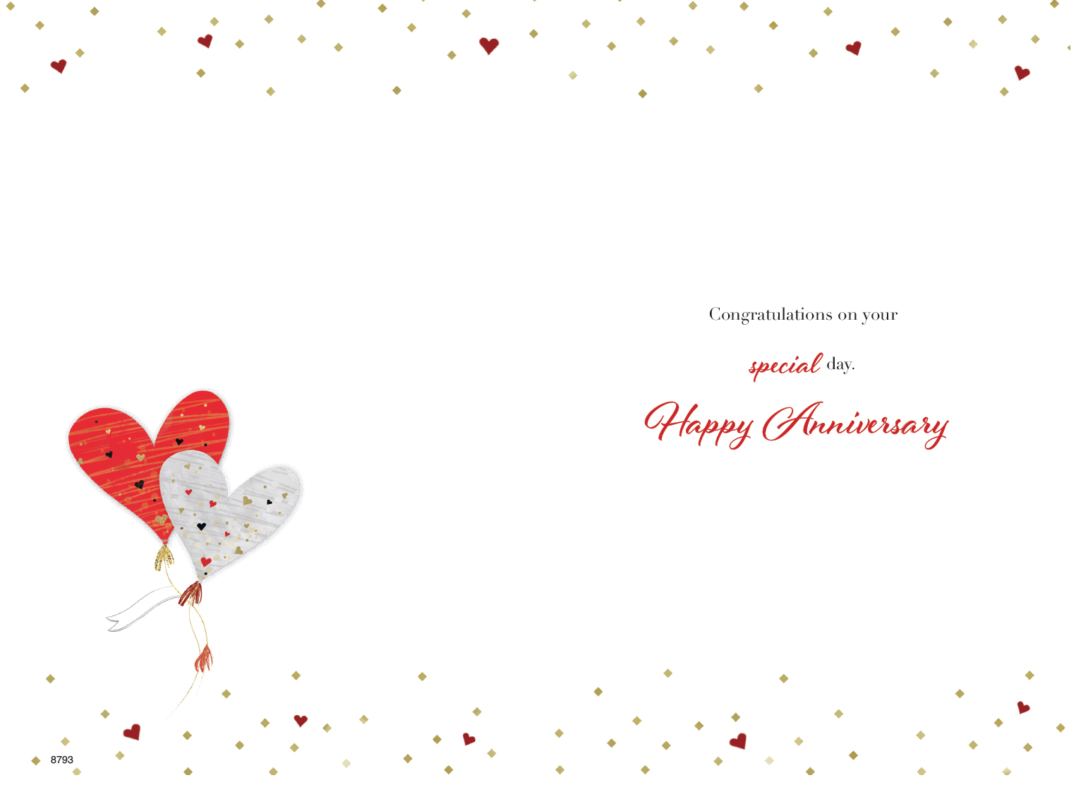 Verse reads: Front - May you celebrate many more happy years together Inside - Congratulations on your special day. Happy Anniversary