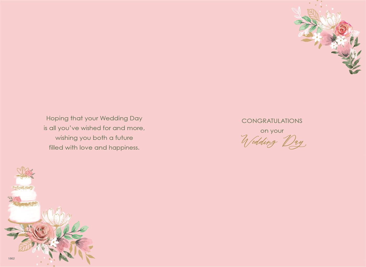 Verse: Hoping that your Wedding Day is all you've wished for and more, wishing you both a future filled with love and happiness. Congratulations on your Wedding Day