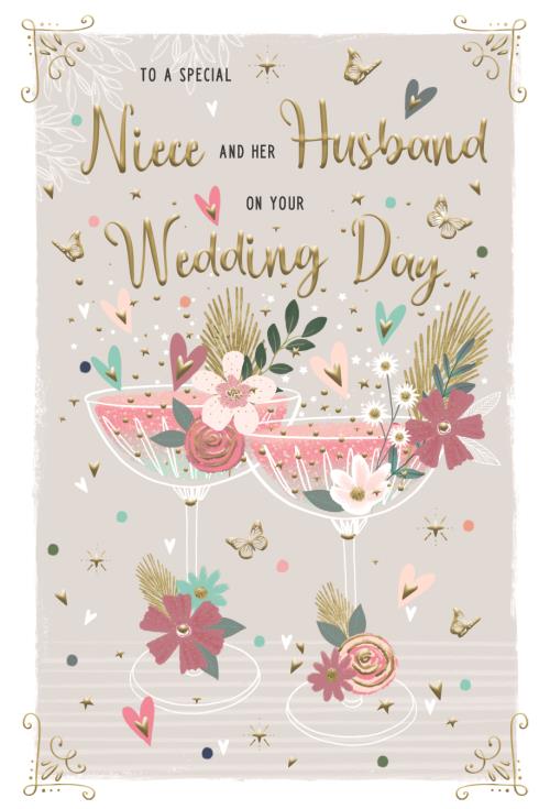 Wedding Card Niece and her Husband - Champagne Glasses - Flowers