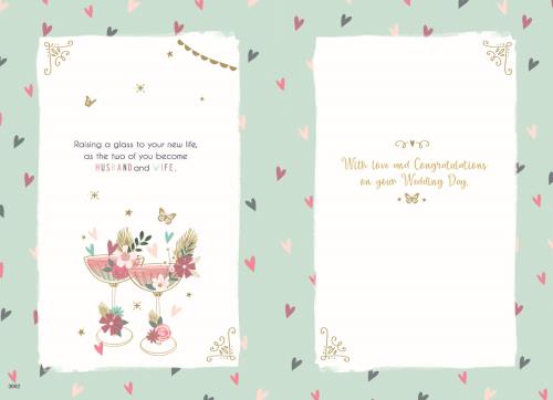 Verse: Raising a glass to your new life, as the two of you become Husband and Wife. With love and Congratulations on your Wedding day.