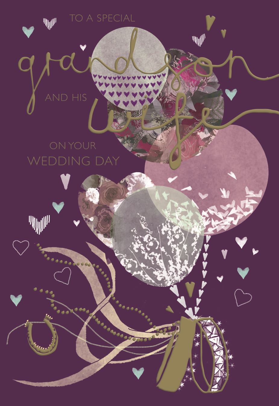 Grandson and Wife Wedding Card - Confetti Balloons - Wedding Rings