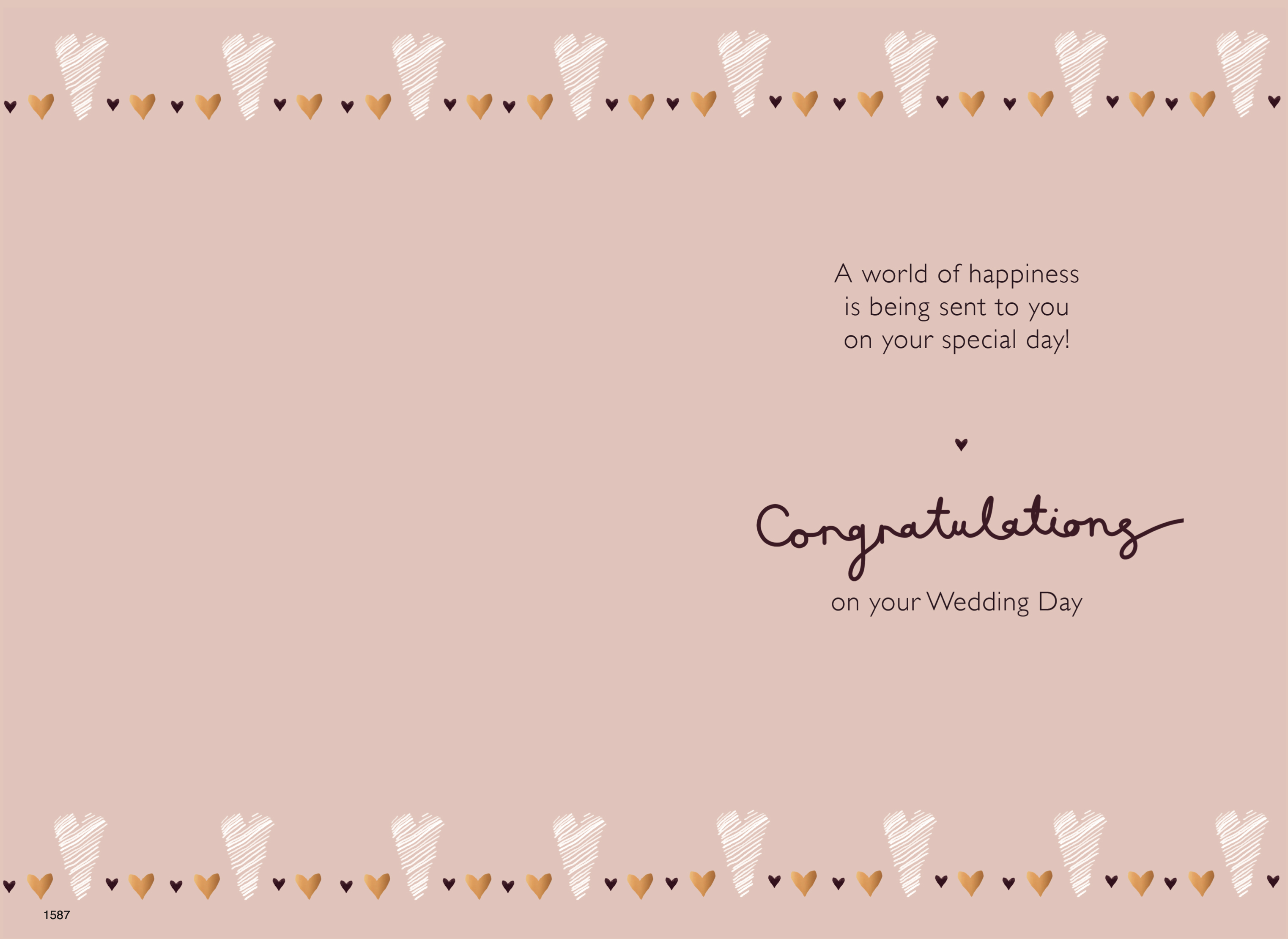 Verse reads: A world of happiness is being sent to you on your special day! Congratulations on your Wedding Day