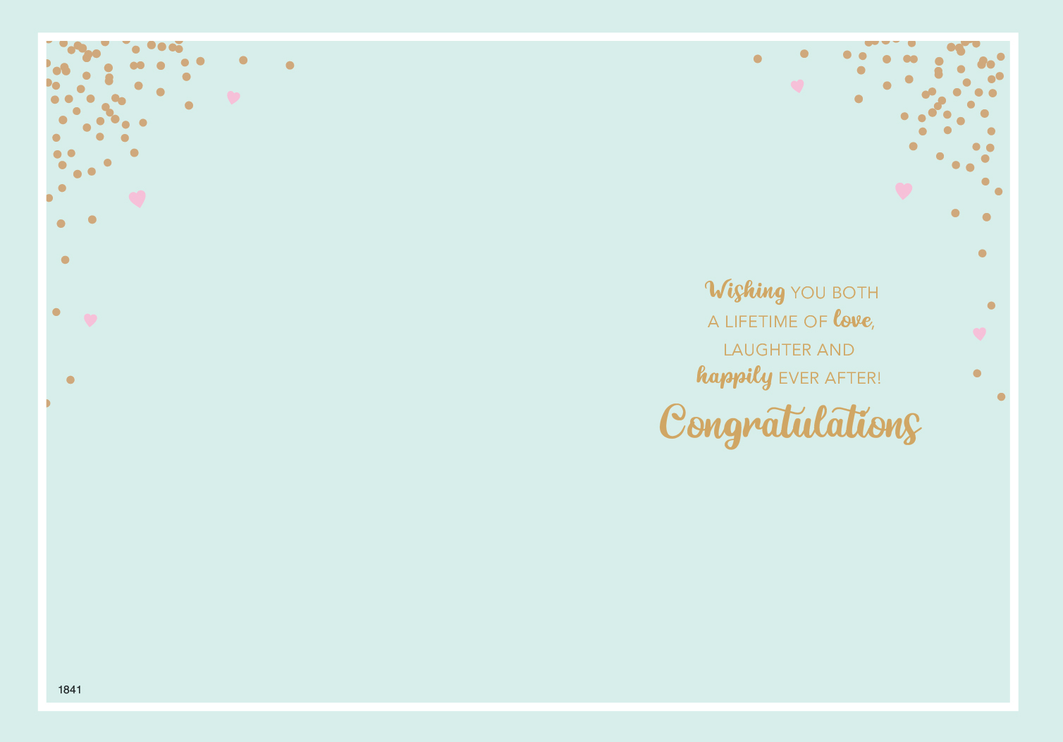 Verse reads: Wishing you both a lifetime of love, laughter and happily every after! Congratulations