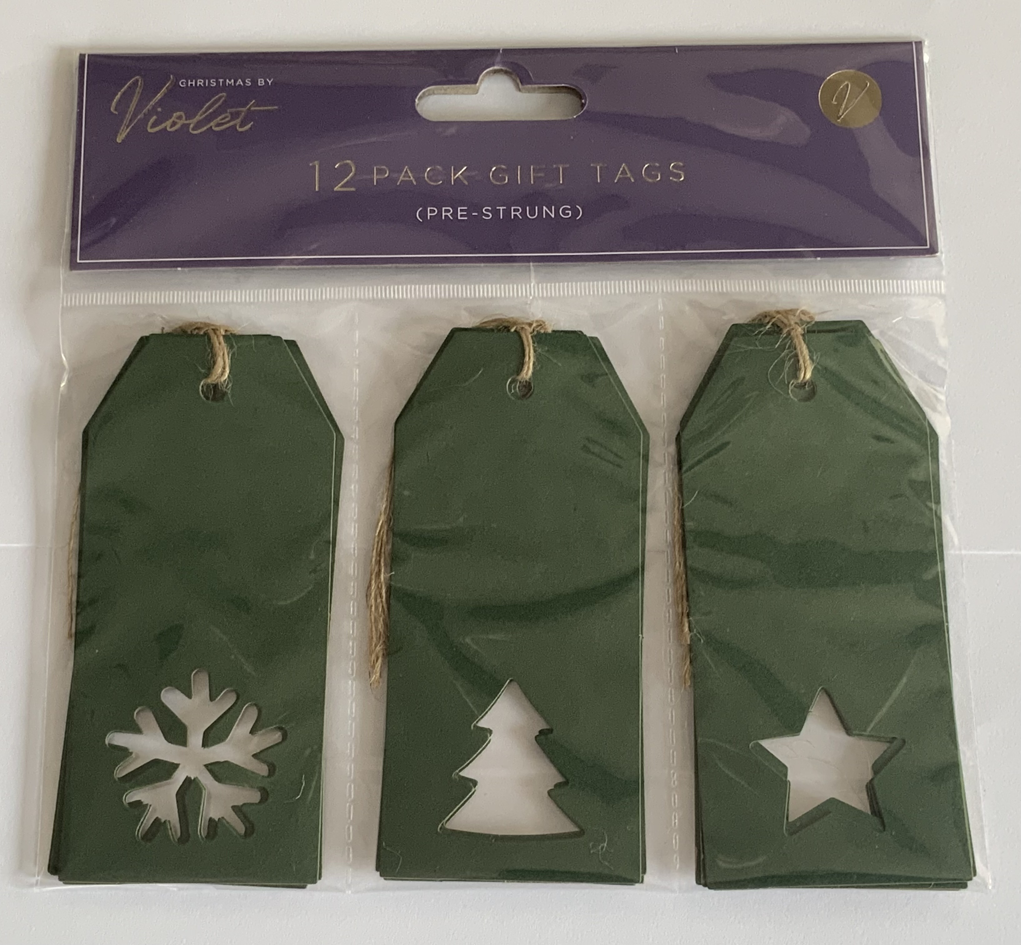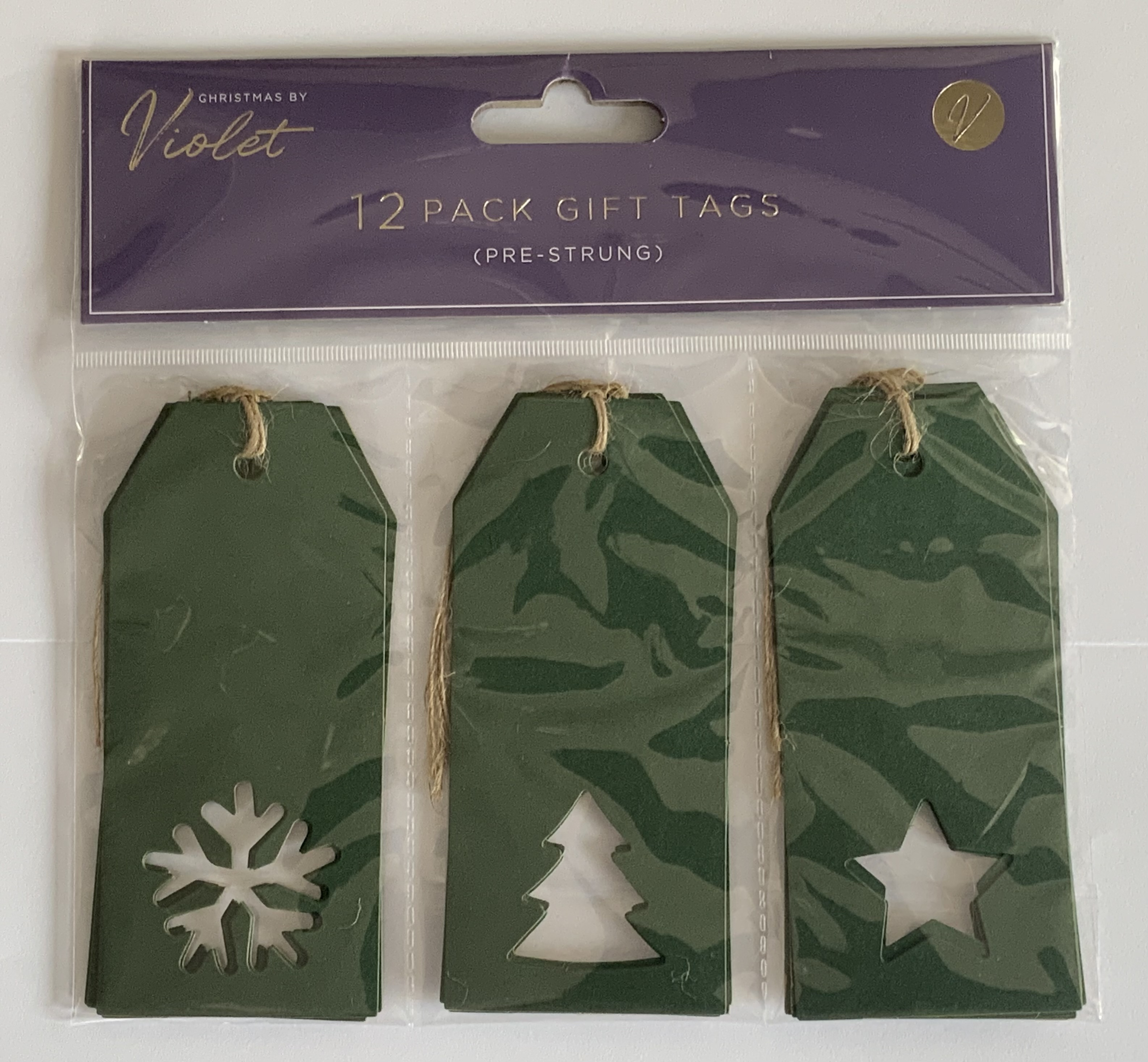Christmas Gift Tags - 12 Pack - Dark Green - Pre - Strung - Die Cut