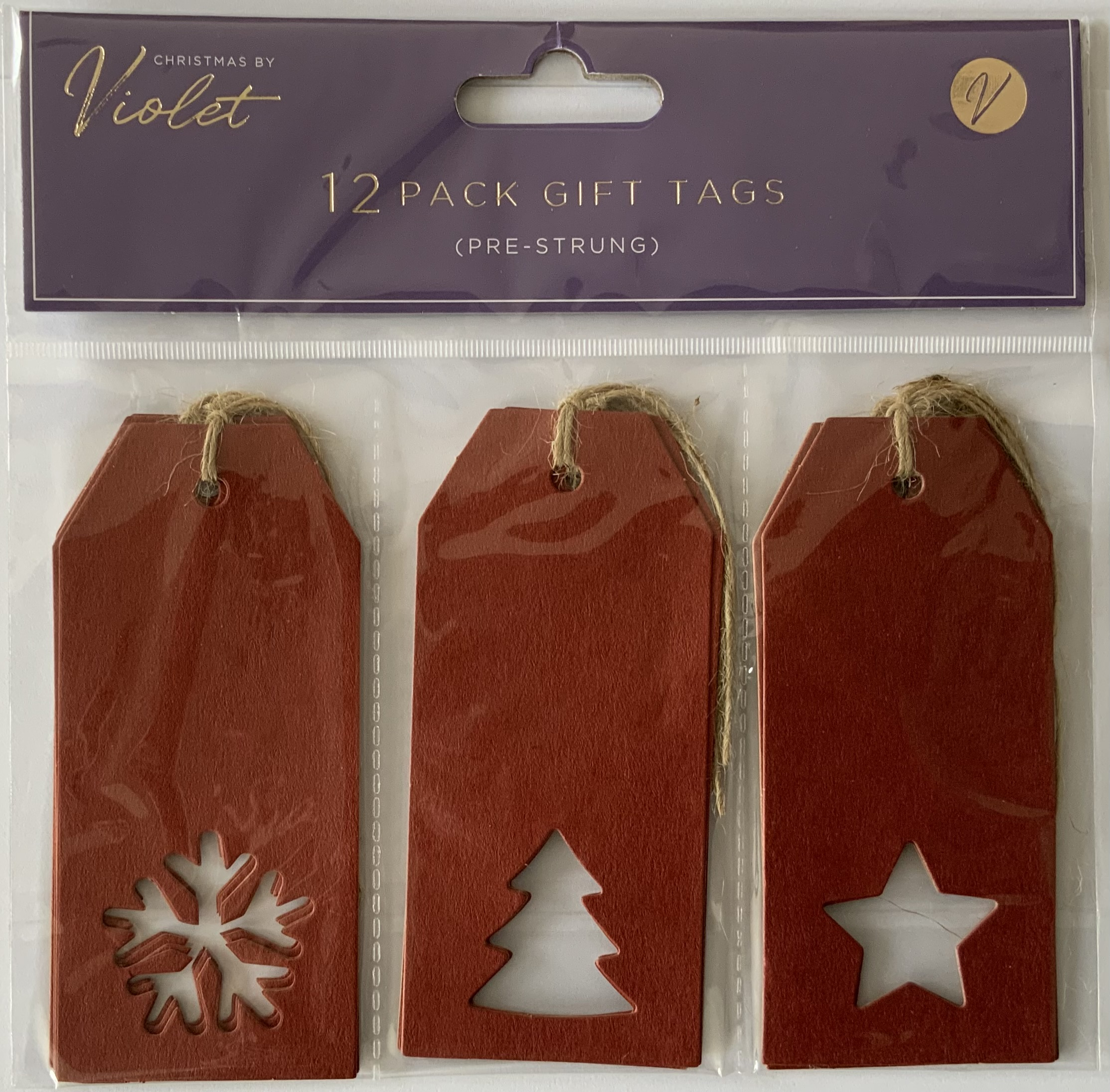 Christmas Red Kraft Tags - Pack of 12 - Die Cut Design