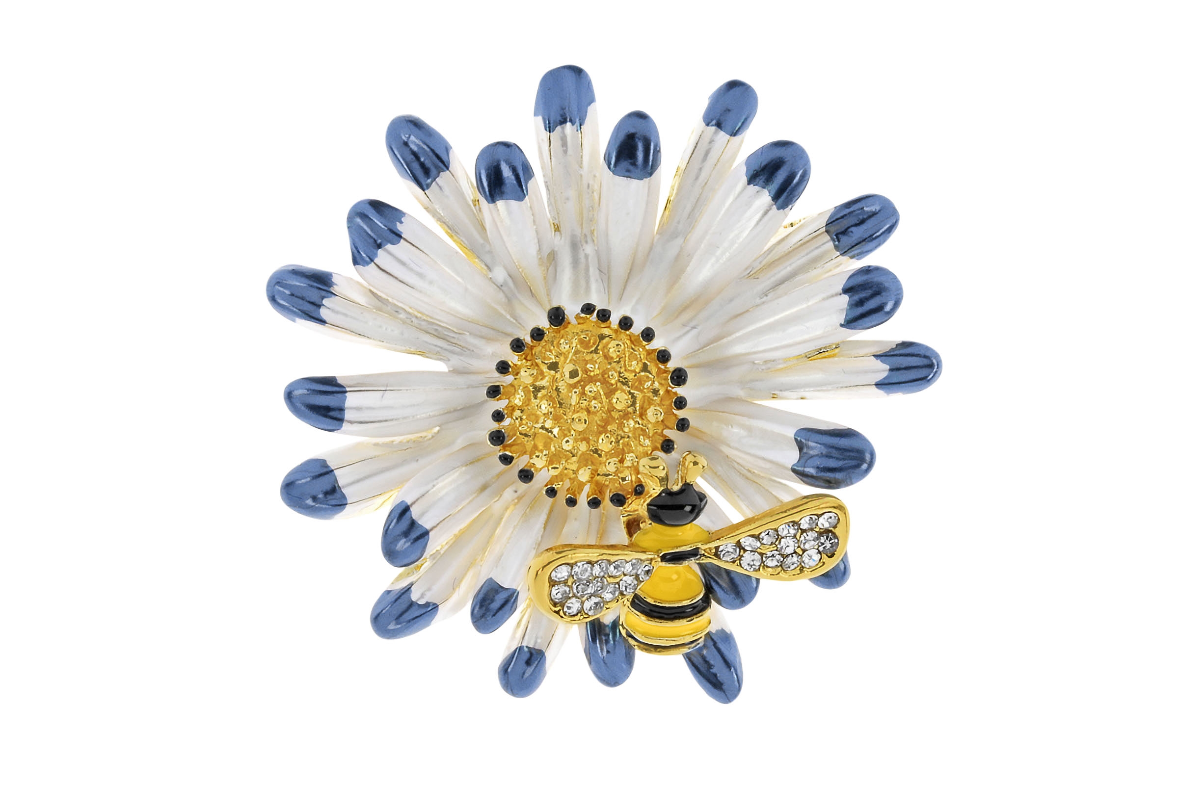 Bee on Flower Brooch - Gold Plated & Matte Enamel