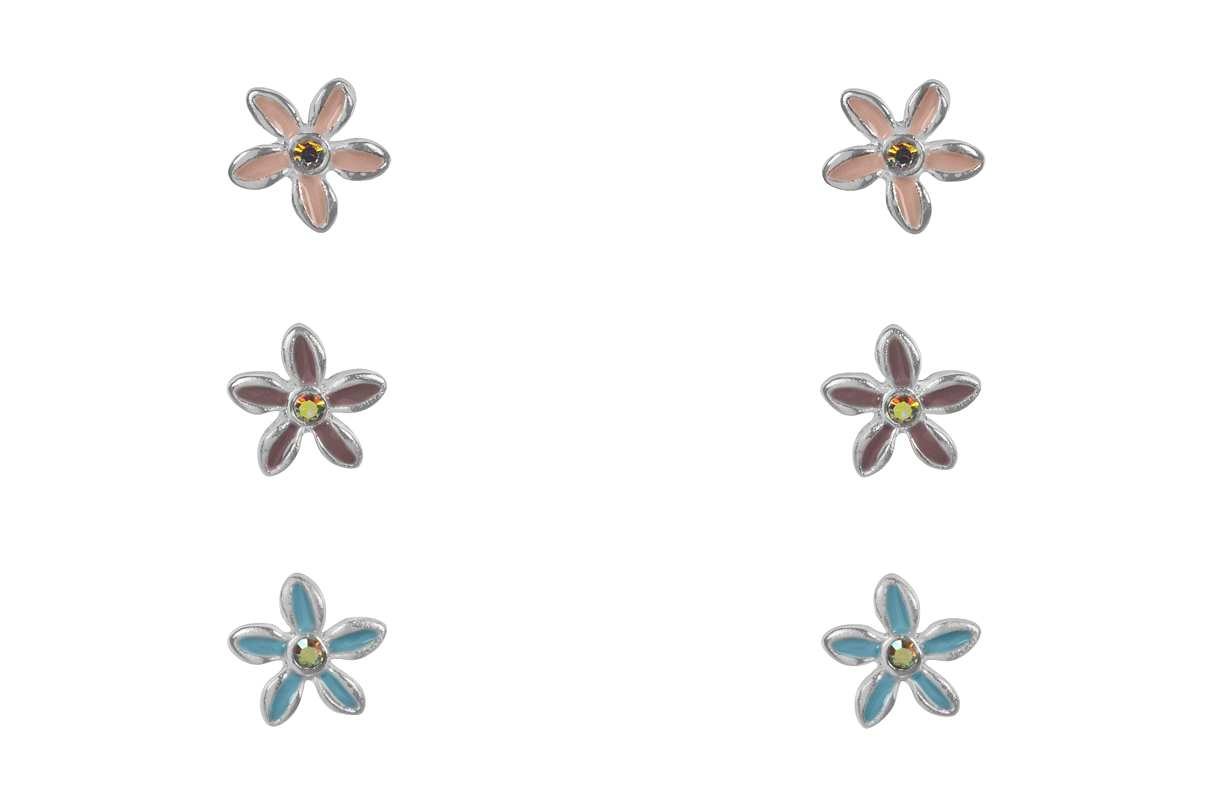 Silver Plated Trio Pink Blue Enamel Flower Studs