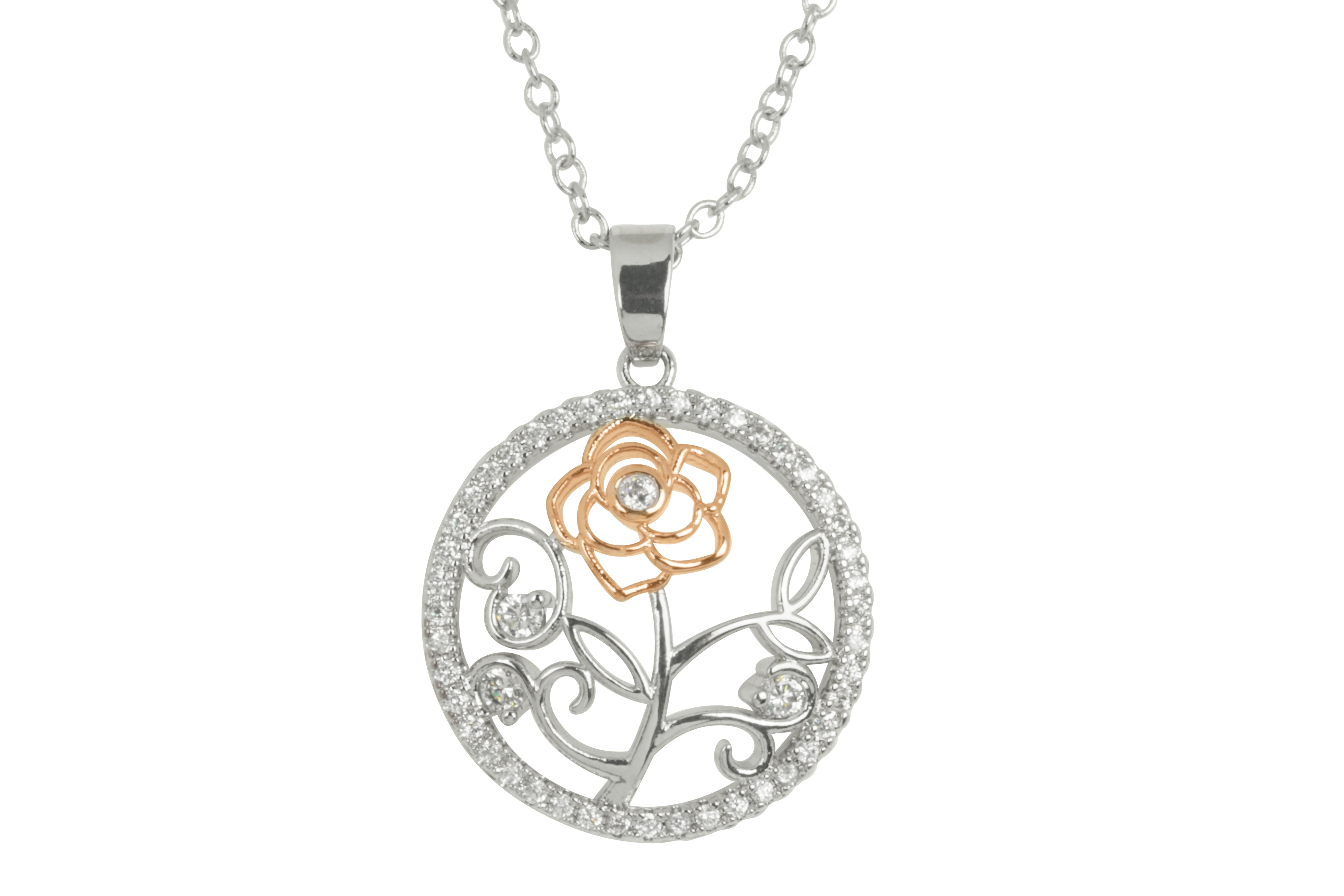 Gold/Rhodium Cubic Zirconia Crystal Rose Necklace
