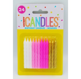 Pink/White/Gold 24 Pack of Candles - Cake Decoration