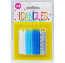Blue/White/Silver 24 Pack of Candles - Cake Decoration