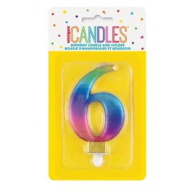 Number 6 - Unique Candle and Holder - Metallic Rainbow