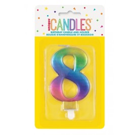 Number 8 - Unique Candle and Holder - Metallic Rainbow