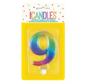 Number 9 - Unique Candle and Holder - Metallic Rainbow