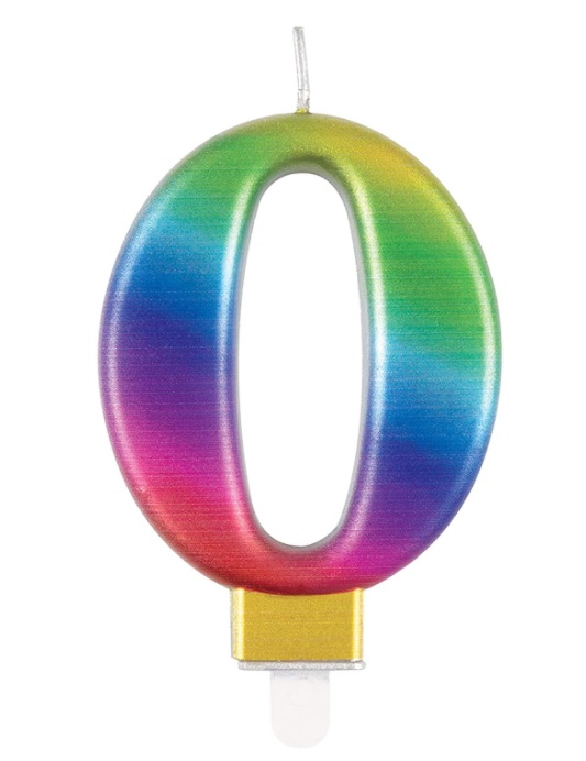 Number 0 - Unique Candle and Holder - Metallic Rainbow