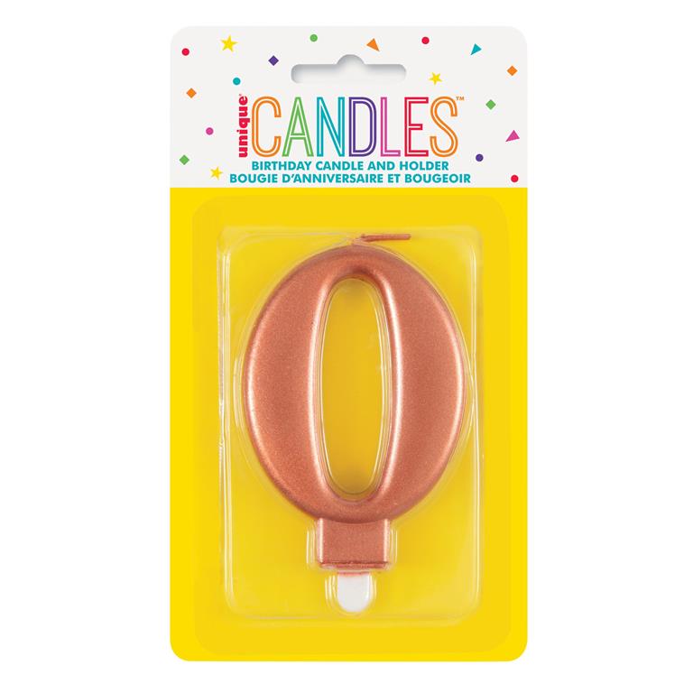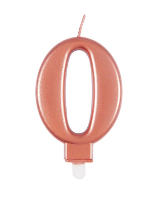 Number 0 - Unique Candle and Holder - Metallic Rose Gold