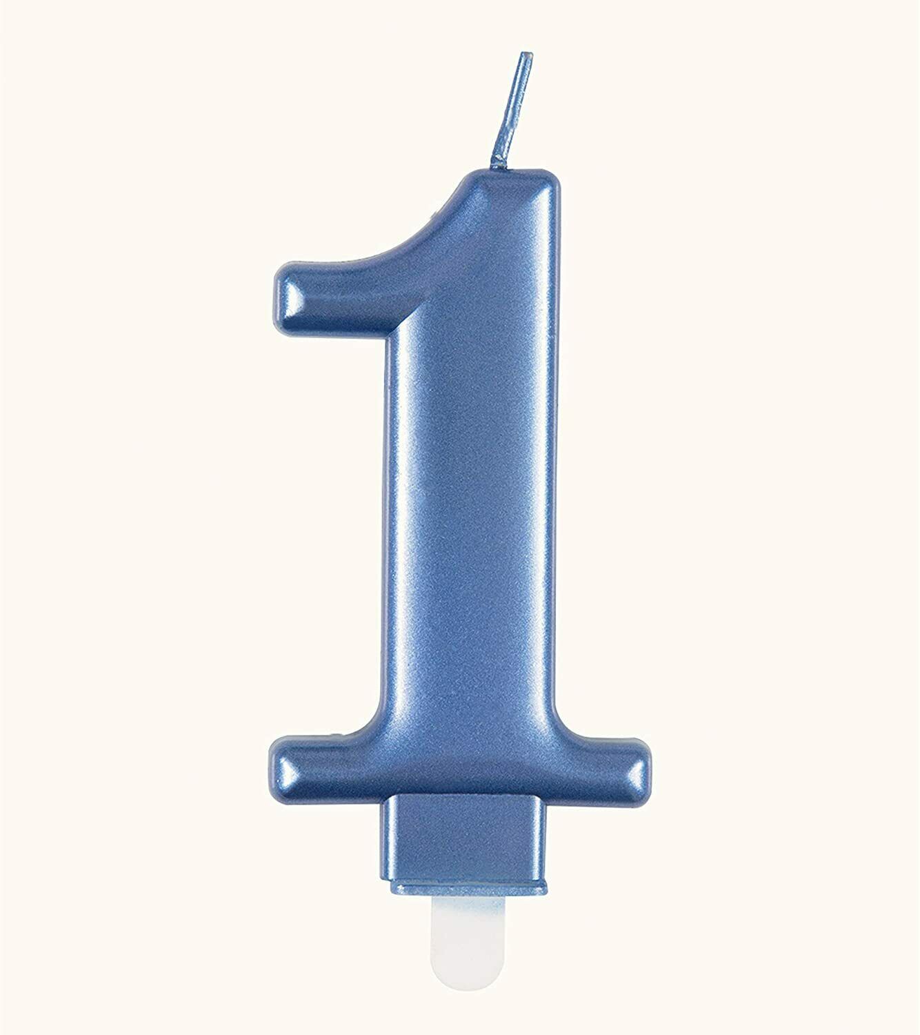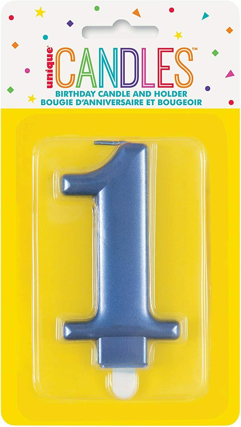 Number 1 - Unique Candle and Holder - Metallic Blue