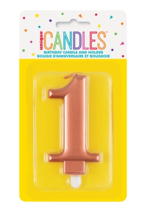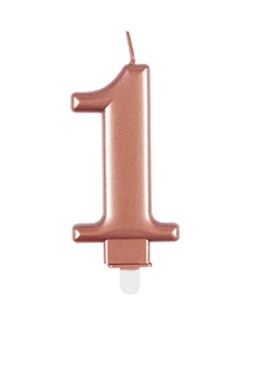 Number 1 - Unique Candle and Holder - Metallic Rose Gold