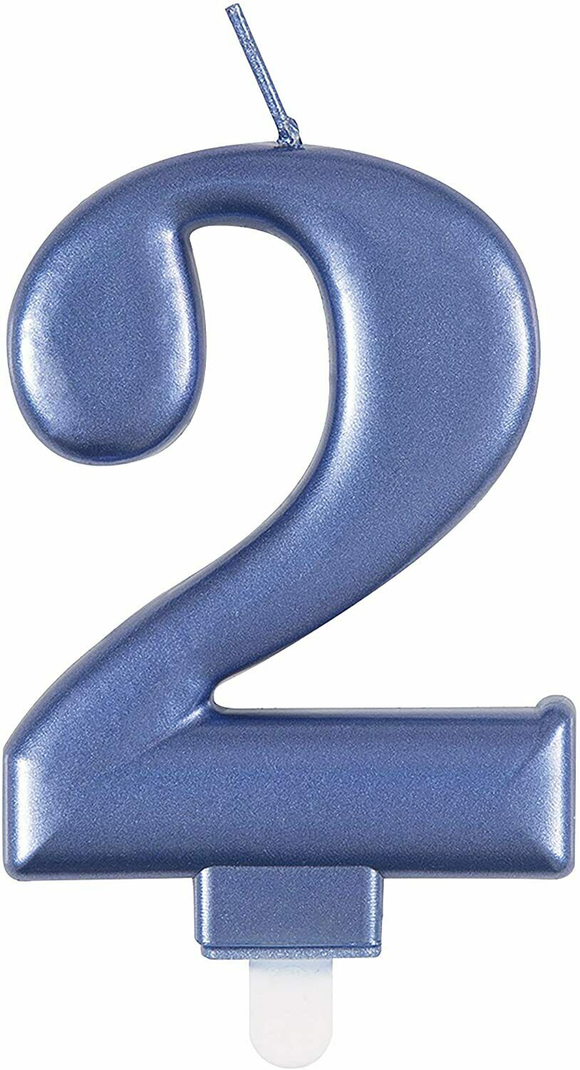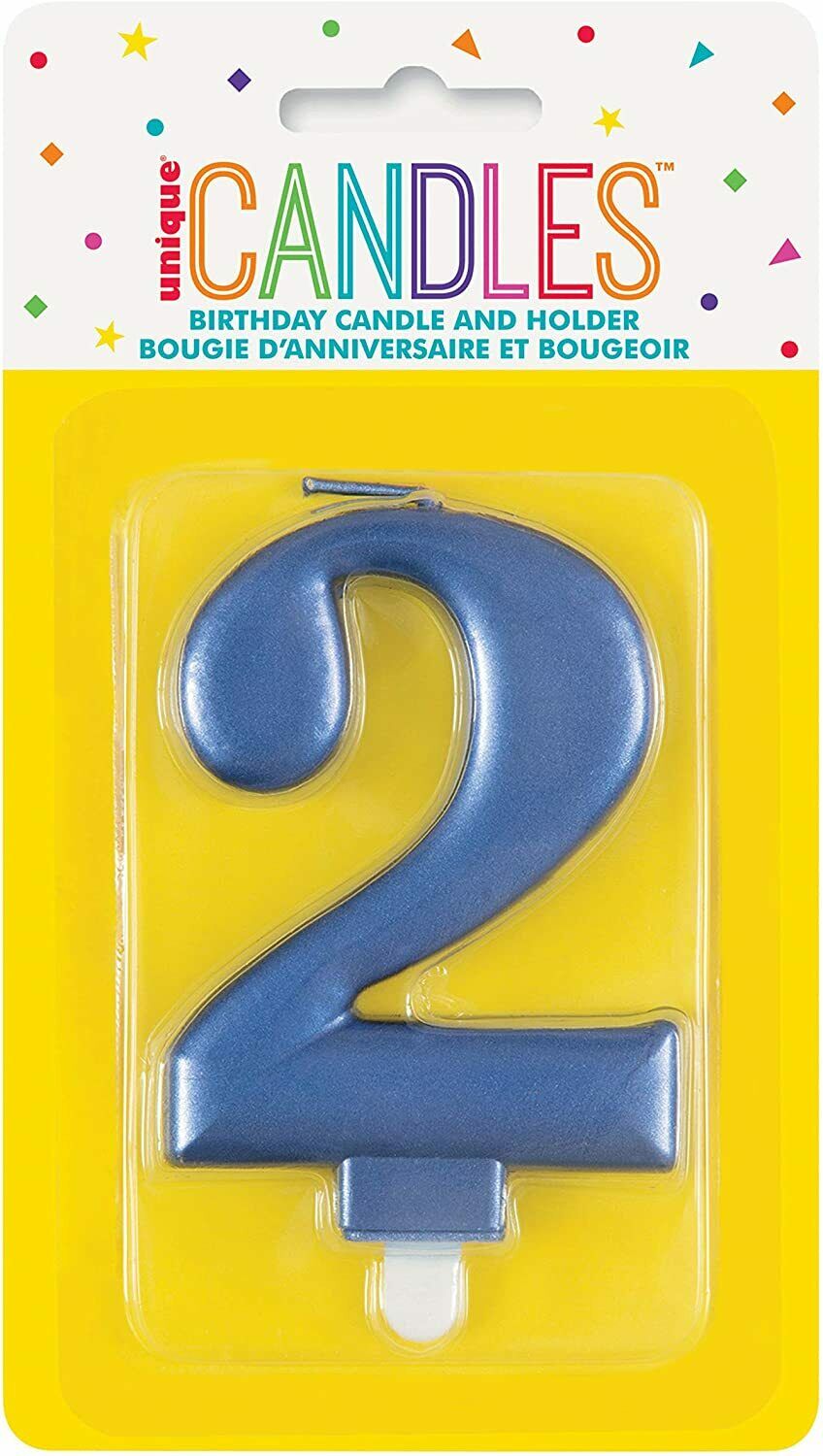 Number 2 - Unique Candle and Holder - Metallic Blue