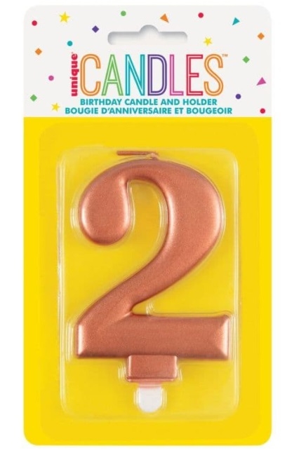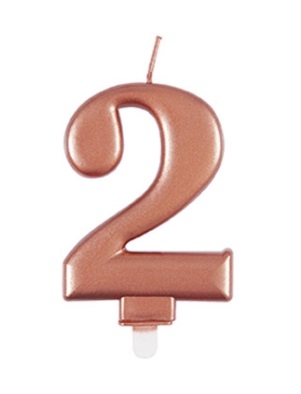 Number 2 - Unique Candle and Holder - Metallic Rose Gold