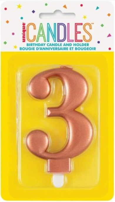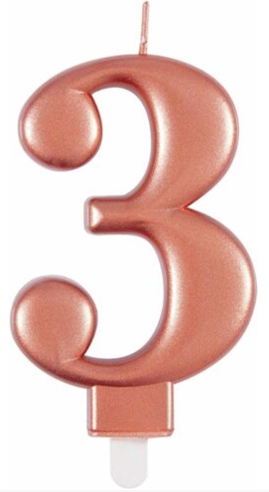 Number 3 - Unique Candle and Holder - Metallic Rose Gold