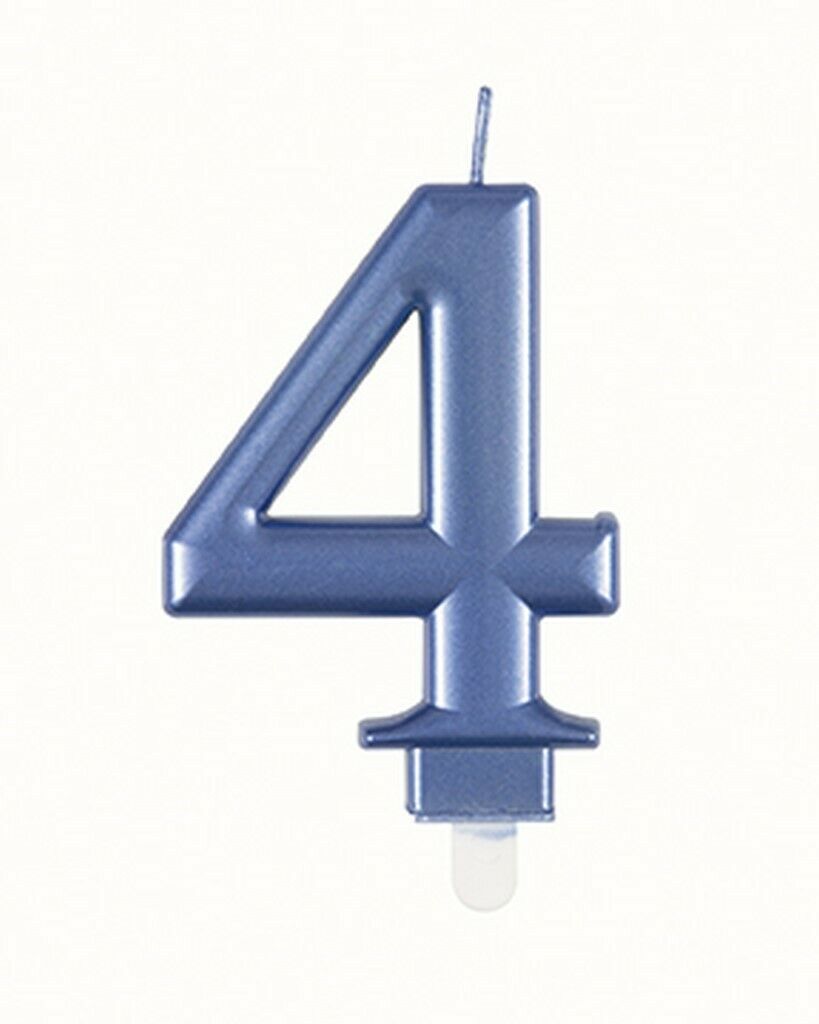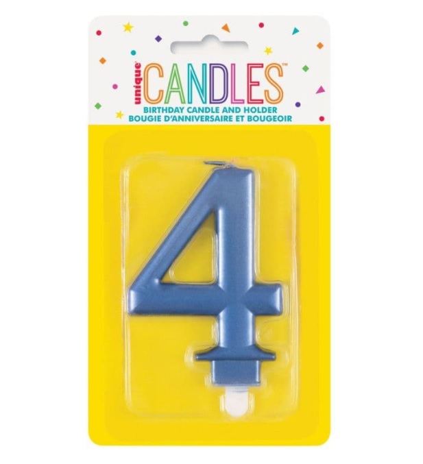 Number 4 - Unique Candle and Holder - Metallic Blue