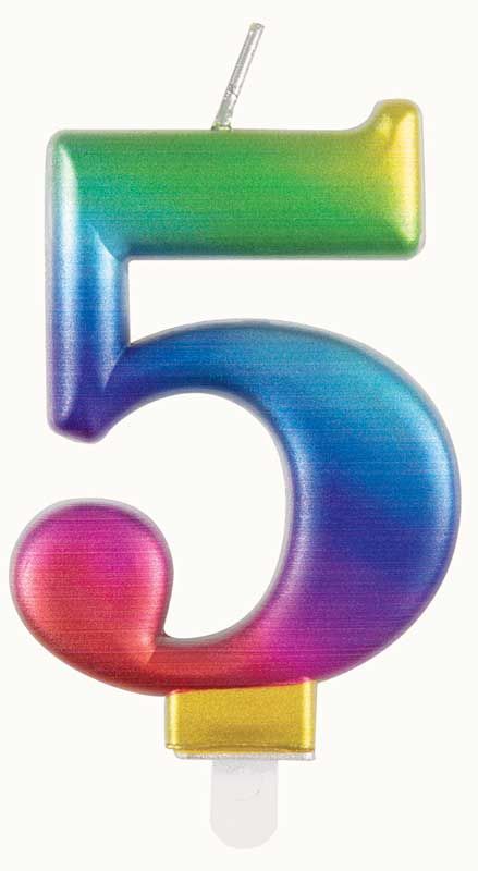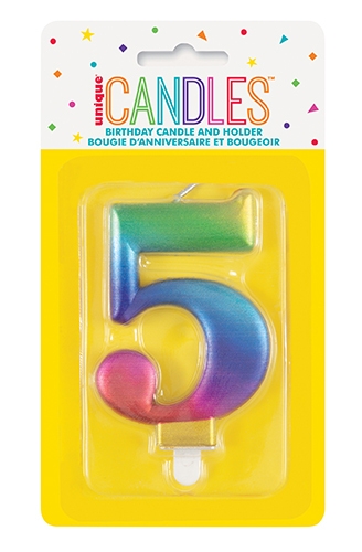 Number 5 - Unique Candle and Holder - Metallic Rainbow