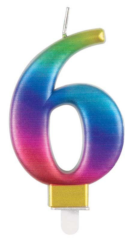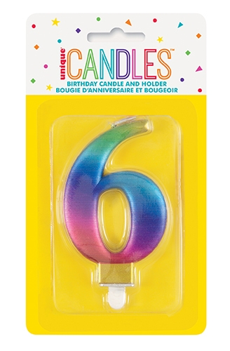 Number 6 - Unique Candle and Holder - Metallic Rainbow