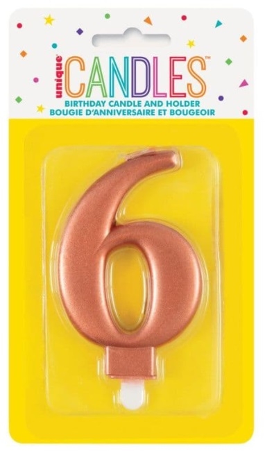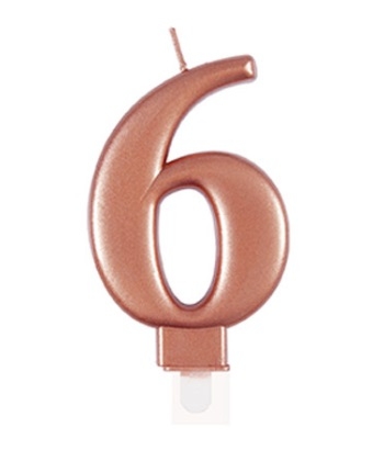 Number 6 - Unique Candle and Holder - Metallic Rose Gold