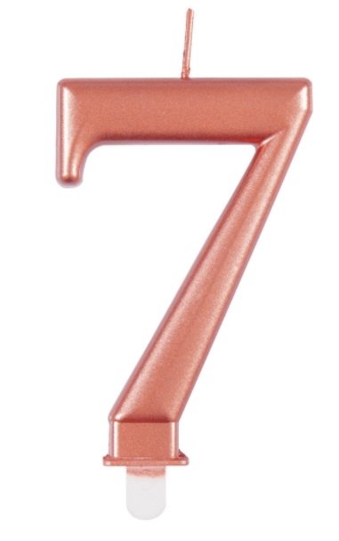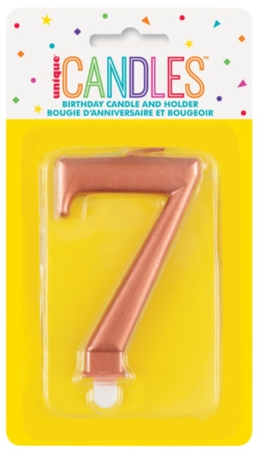 Number 7 - Unique Candle and Holder - Metallic Rose Gold