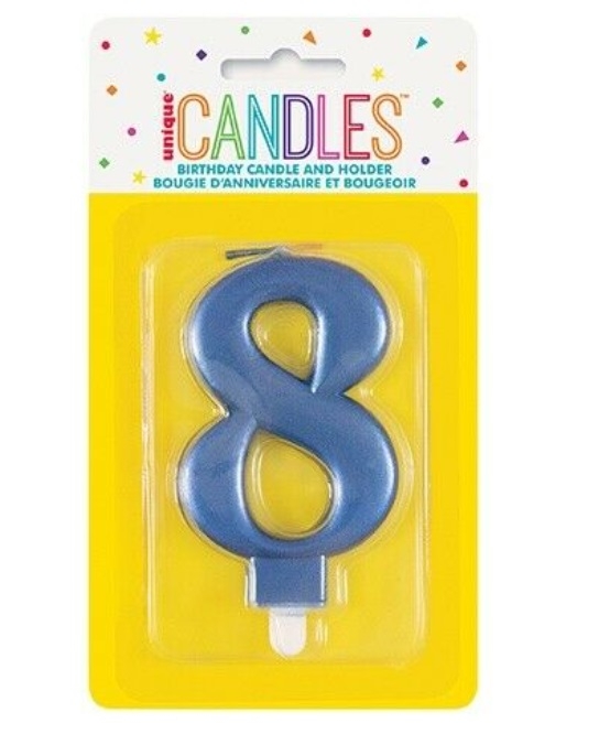 Number 8 - Unique Candle and Holder - Metallic Blue