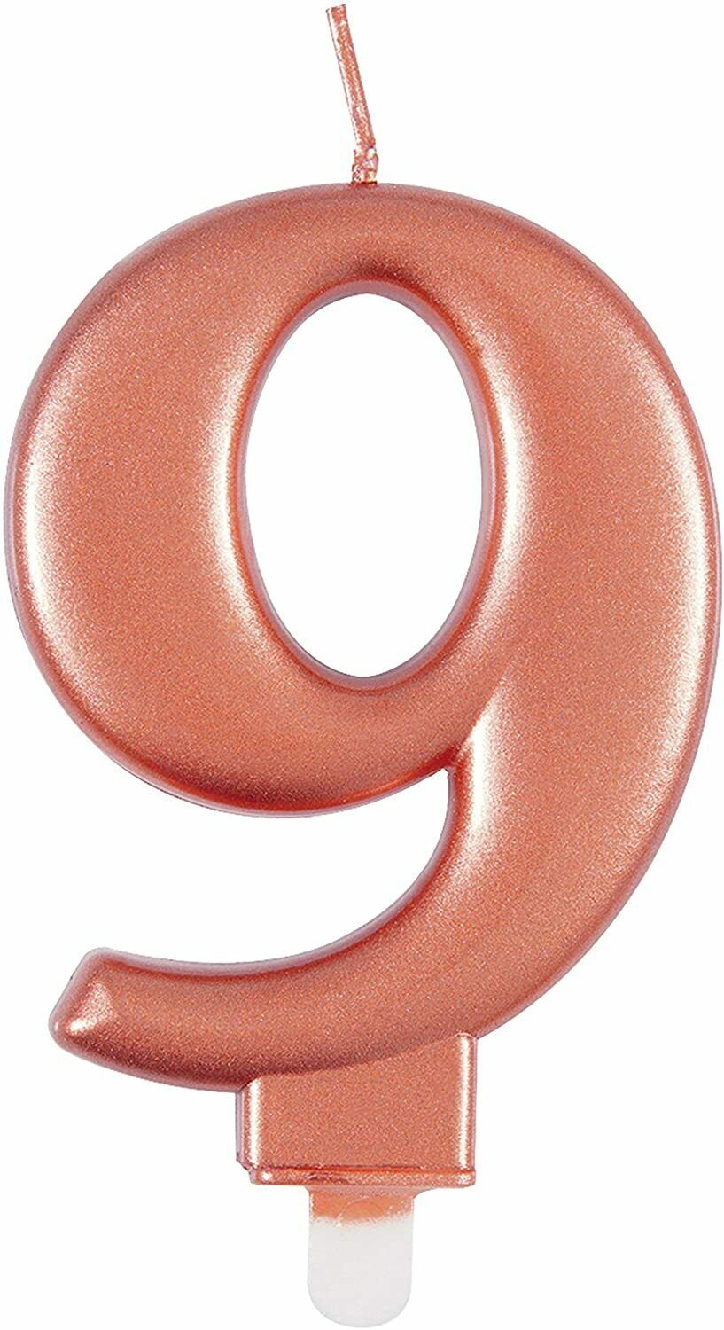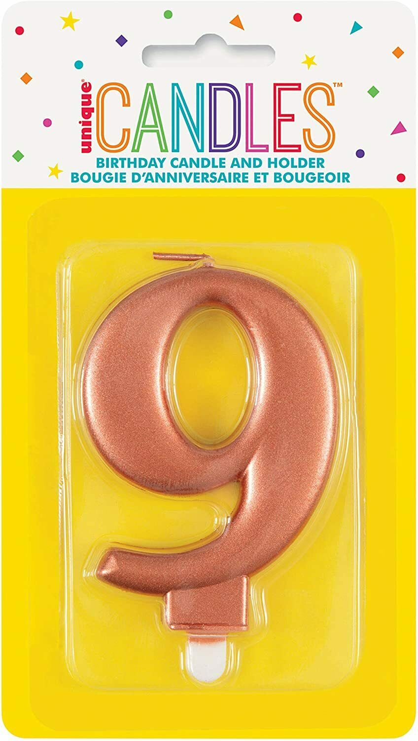 Number 9 - Unique Candle and Holder - Metallic Rose Gold