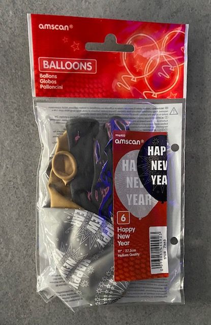 Balloons - Happy New Year 6 Pack - Latex - Gold Black Silver