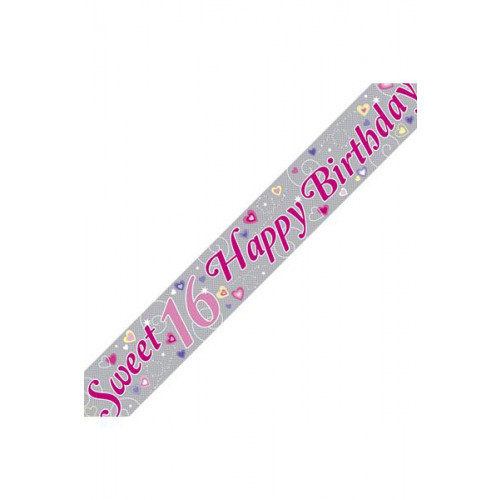 16th Birthday - Foil Banner - Sweet 16 Holographic