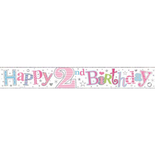 2nd Birthday - Foil Banner - Girl - Stars & Hearts