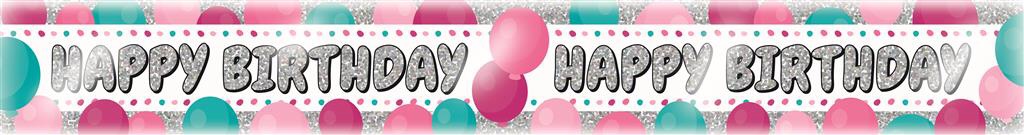 Happy Birthday - Holographic Foil Party Banner - Pink Balloons