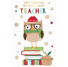 Teacher - Christmas - Wise Owl on Books with Mince Pie