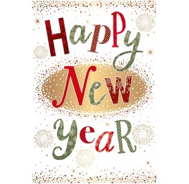 Happy New Year - Starbursts and Dots - Gold Foil