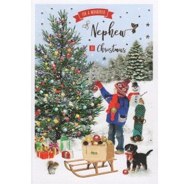 Nephew - Christmas - Boy Dressing Xmas Tree with Dog