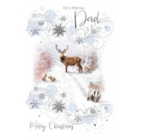 Dad - Christmas - Stag in the Snowy Woods - Silver Foil
