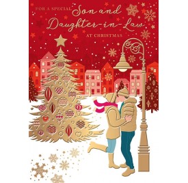 Son and Daughter-in-Law - Christmas - Gold Tree and Couple
