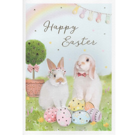 Easter Card - Open - Bunny Rabbit - Eggs - Rainbow