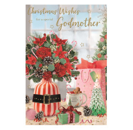 Godmother Christmas Card - Vase Flowers - Gift bag - Gingerbread Cup