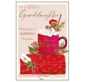 Granddaughter - Christmas Card - Luxury - Gingerbread Men with Marshmallows and a Mug
